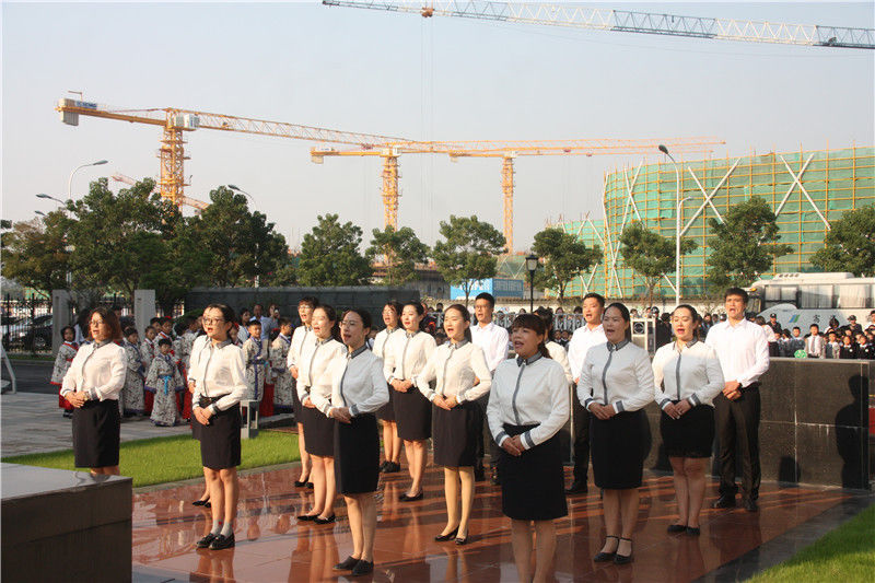 老师们排着整齐的队伍,聚集在孔子像前,在古朴悠扬的音乐声中拉开了祭孔典礼的序幕。