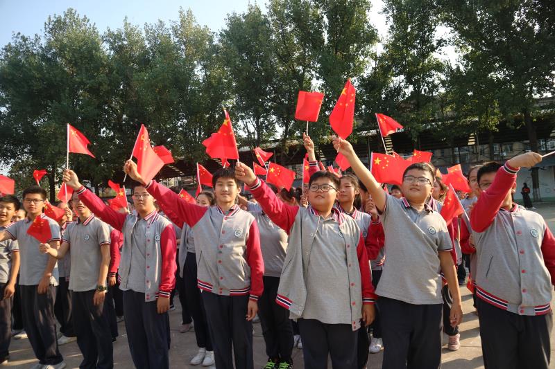 2019年9月30日,徐州市树恩中学复兴北路校区开展了庆祝新中国成立70周年经典诵读特殊升旗快闪活动。