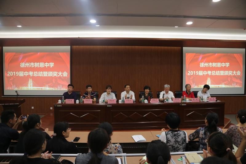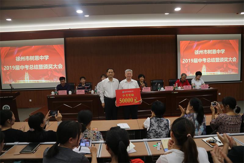 2019年9月27日下午,徐州市树恩中学2019届中考总结暨颁奖大会在高铁校区第一阶梯教室隆重举行,全体初中教师和高中部分教师参加了会议。刘永生校长主持大会。薛淑萍校长作了总结报告,对2019年中考工作进行总结,对2020年中考进行动员部署。徐州市爱游戏体育官方网站首页(中国)有限公司实业集团张爱萍董事长代表集团对取得优异成绩的中考团队颁发了奖金。原九年级部主任石院老师、现九年级部主任窦道洲老师、高铁校区八年级部主任卢振锦老师、高一年级部主任程建军老师分别代表年级部老师作了大会发言。