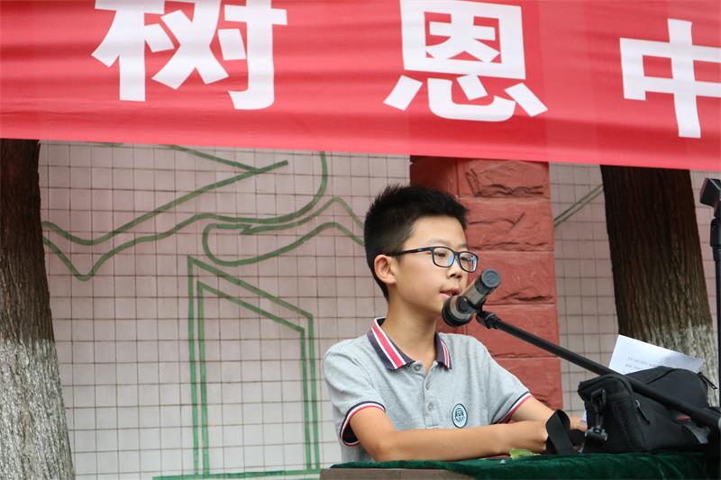八1班唐皓文同学发言:让我们追求卓越,创造出属于自己的峥嵘岁月,树恩中学会因你的奋斗而更加精彩