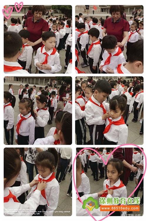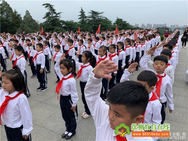 这震耳欲聋的宣誓响彻在徐州淮海烈士纪念塔的上空!鲜艳的红领巾映衬着新队员的脸颊,每个人的脸上都洋溢着幸福、甜蜜的笑容,这是他们最激动的时刻。