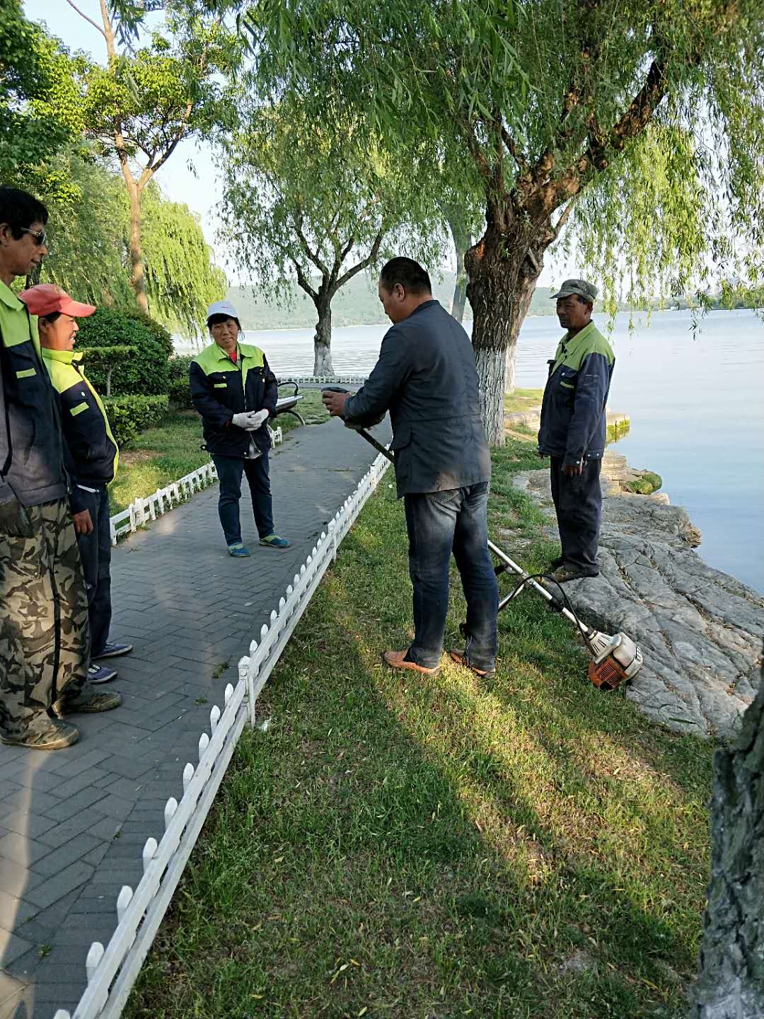 讲解剪草机及绿篱机的操作要领及程序 组织主管及班长进行机械实操 组织学习修剪的基本要领及程序 班前组织员工集中学习,讲安全生产和劳动纪律