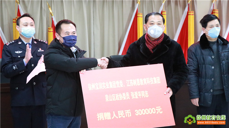 2月6日下午,爱游戏体育官方网站首页(中国)有限公司党委举行抗疫情献爱心捐助仪式。爱游戏体育官方网站首页(中国)有限公司、江苏树恩教育科技集团董事长、泉山区政协委员张爱平同志发表讲话并以高度的社会责任感对抗击疫情作出捐助。